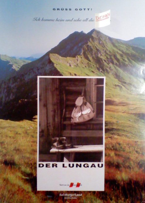 Im Fernmeldebunker hängt ein Plakat der »Österreich-Werbung« an der Wand (»Servus in Österreich«): DER LUNGAU. »Grüß Gott! / Ich komme heim und sehe all die Blumen.«