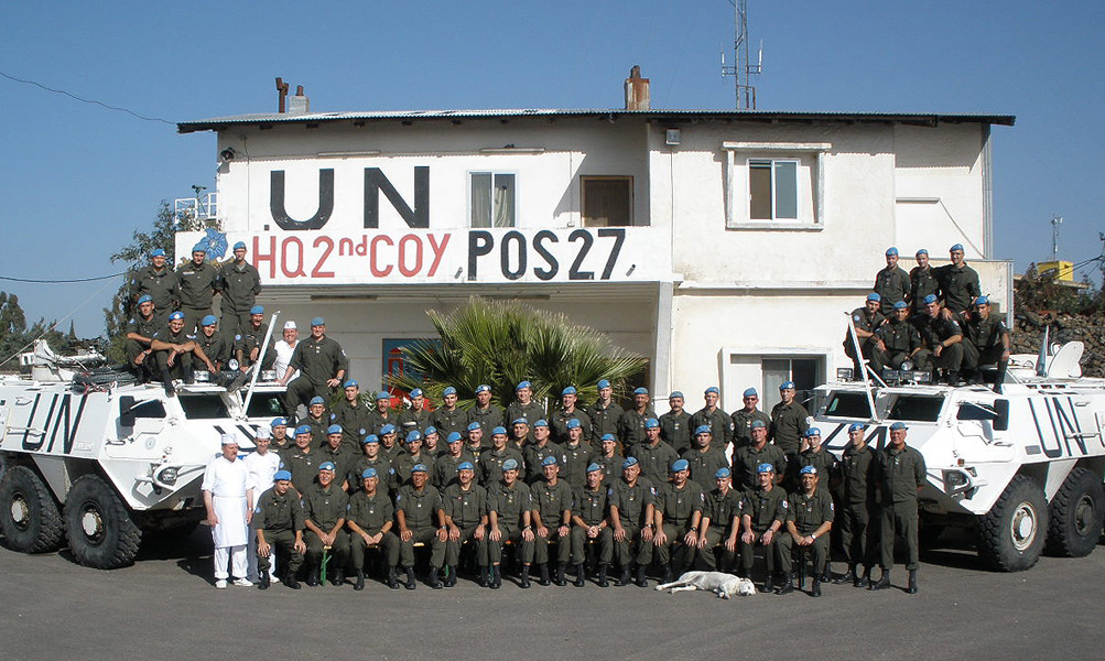 Im Vorzimmer hängen 17 eingerahmte Bilder an der Wand: 17 Mannschaftsfotos der 2. Kompanie; vergangene Rotationen in lückenloser Aufeinanderfolge, in der immer gleichen Ansicht: die Soldaten in drei Reihen aufgestellt vor dem Gebäude des »HQ 2nd Coy«, flankiert von zwei SISU-Panzern. Eine Ahnengalerie.