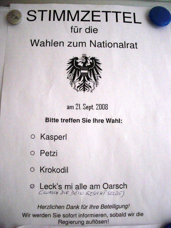 [Die handgeschriebene Anmerkung: »Wasch dir dein Gesicht selbst.«]
