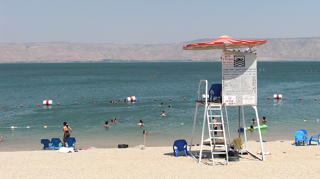 Destination für freie Tage: Tiberias am See Genezareth. Immer mit Blick auf den Golanrücken.
